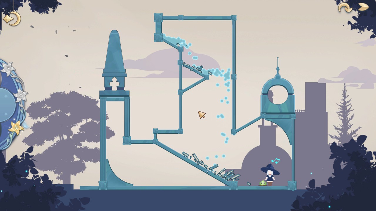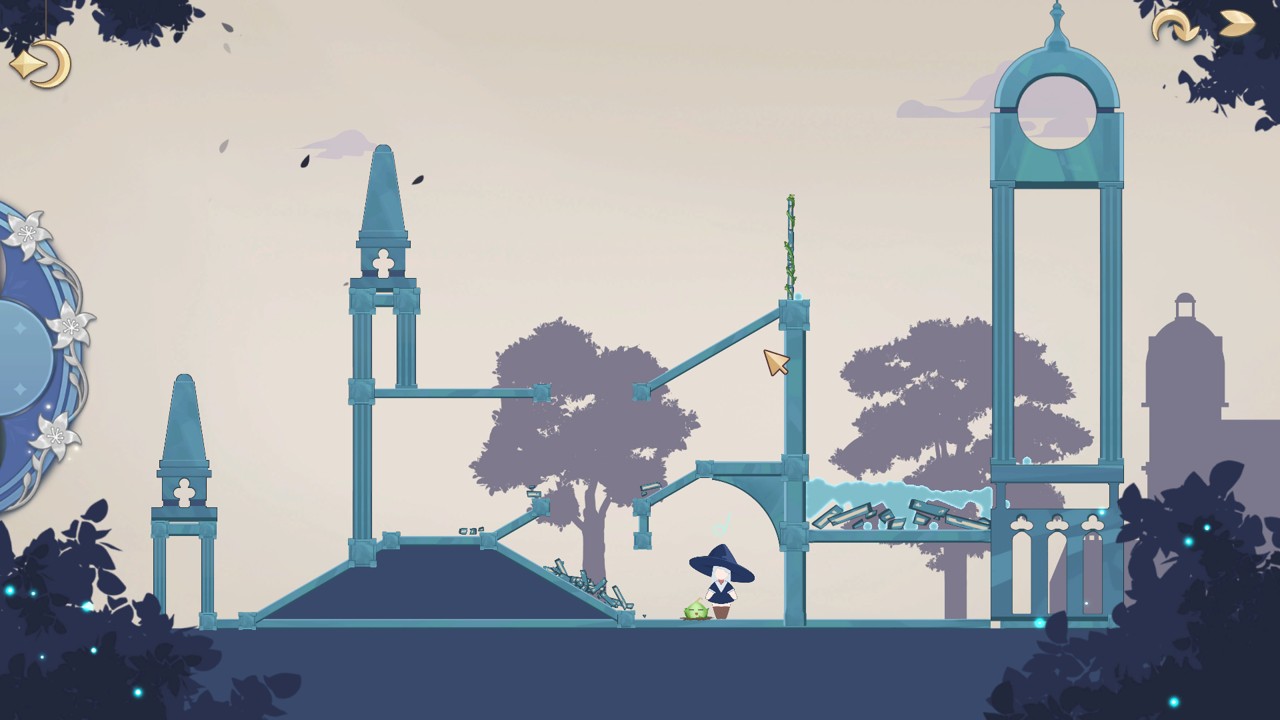 玩家需要控制关卡中的各种机制来帮助魔法学院的女巫和精灵拿到鲜花通过见习魔女测试。