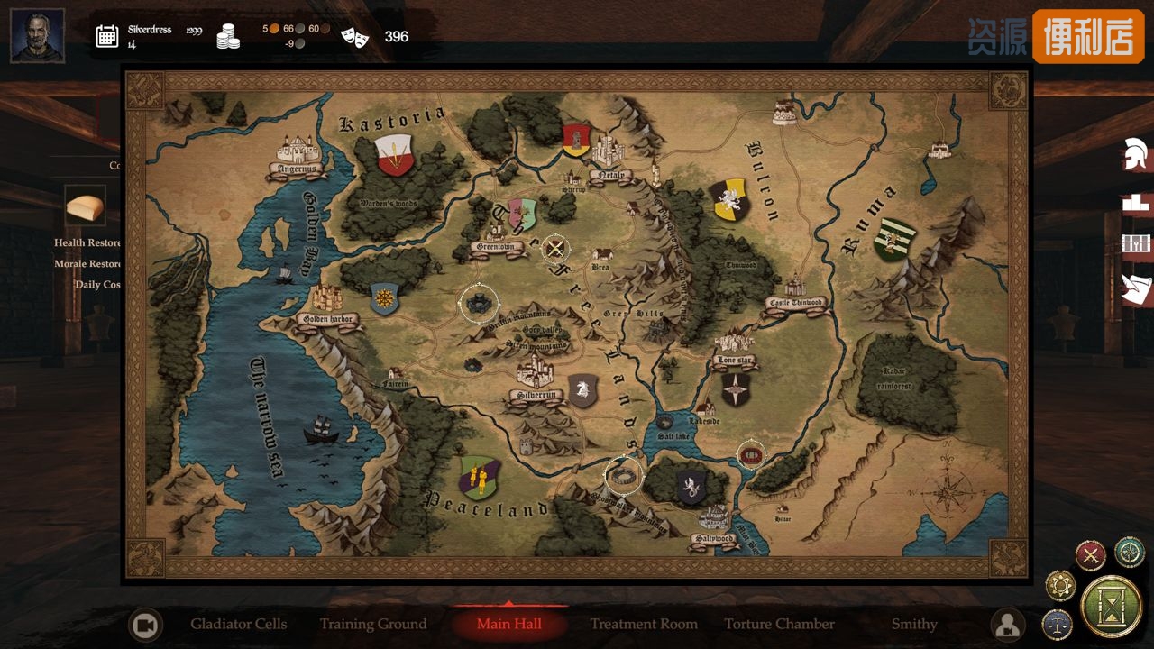 别忘了你还有一个角斗场要管理!随着你的角斗士在其他角斗场的比赛中取得胜利,你将获得金钱和声望作为回报。金钱可以用来购买新的奴隶,更好的装备,还有在需要的时候升级你的角斗场。记得精打细算,因为整个角斗场的运作都建立在金钱之上。声望也是一种重要的资源,它可以用来举办你自己的决斗比赛,并为你带来不菲的收入。
