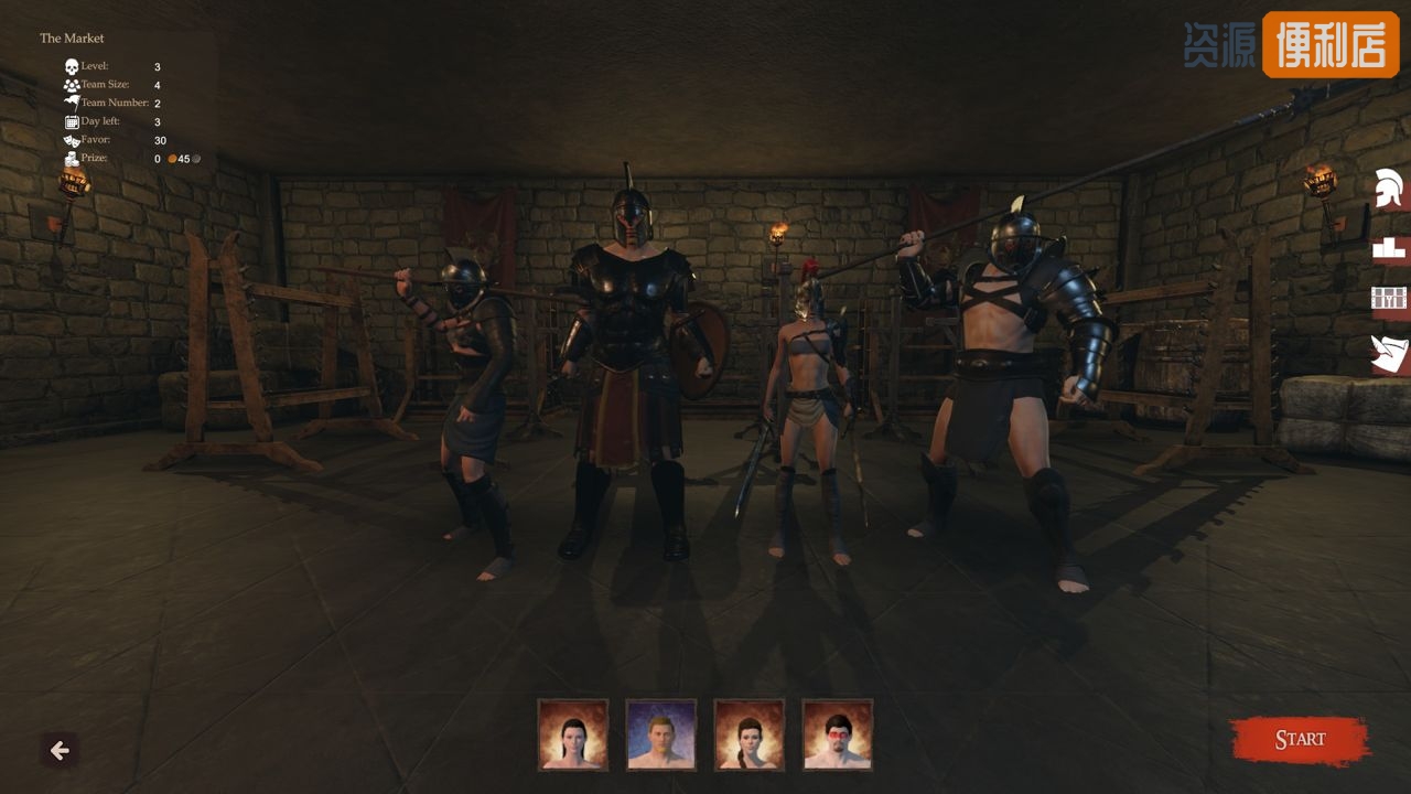 购买奴隶并将他们训练成角斗士。你将需要管理他们的属性,技能和天赋。给他们你能付得起的最高的装备。他们中有一些也许拥有其他天赋,你可以将他们任命为厨师,医师,教官,铁匠等。