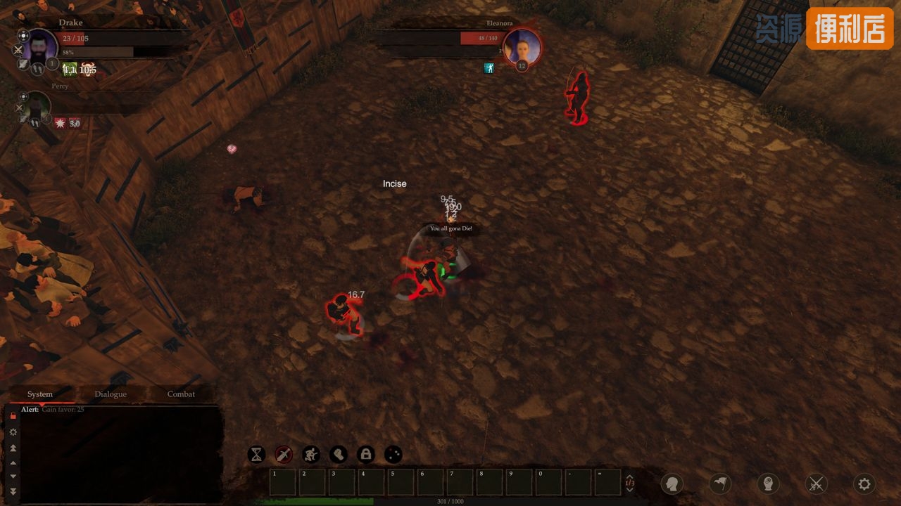像龙腾世纪,永恒之柱等许多经典 CRPG 一样,游戏的战斗是即时的,但你随时可以暂停整个游戏,在多个可控角色中切换,并给每个角色发布命令。