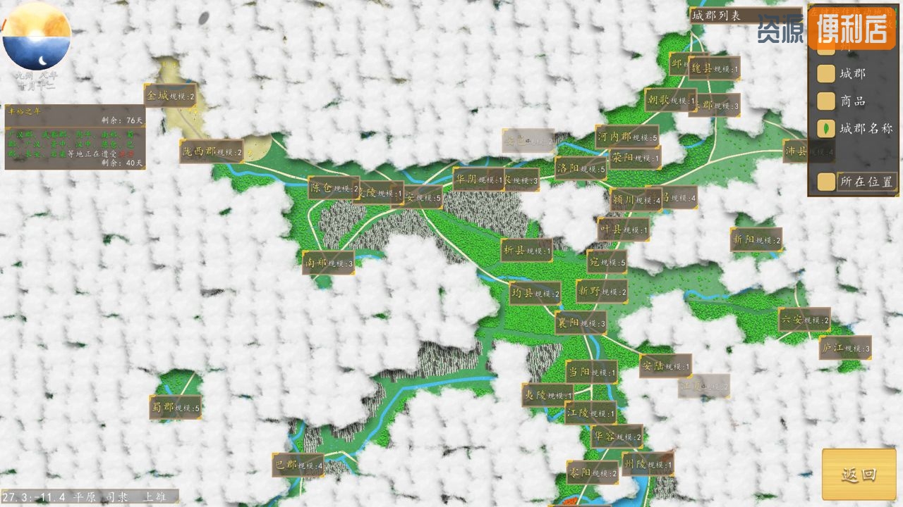 游戏拥有一个不算小的九州地图,并设置了百余种商品。商品根据地理随机分布在各个地方中。